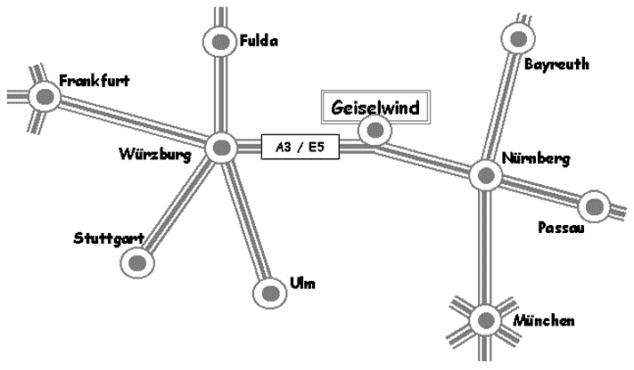 Die Anfahrt kann über die A3/ E5, Abfahrt 76 - Geiselwind